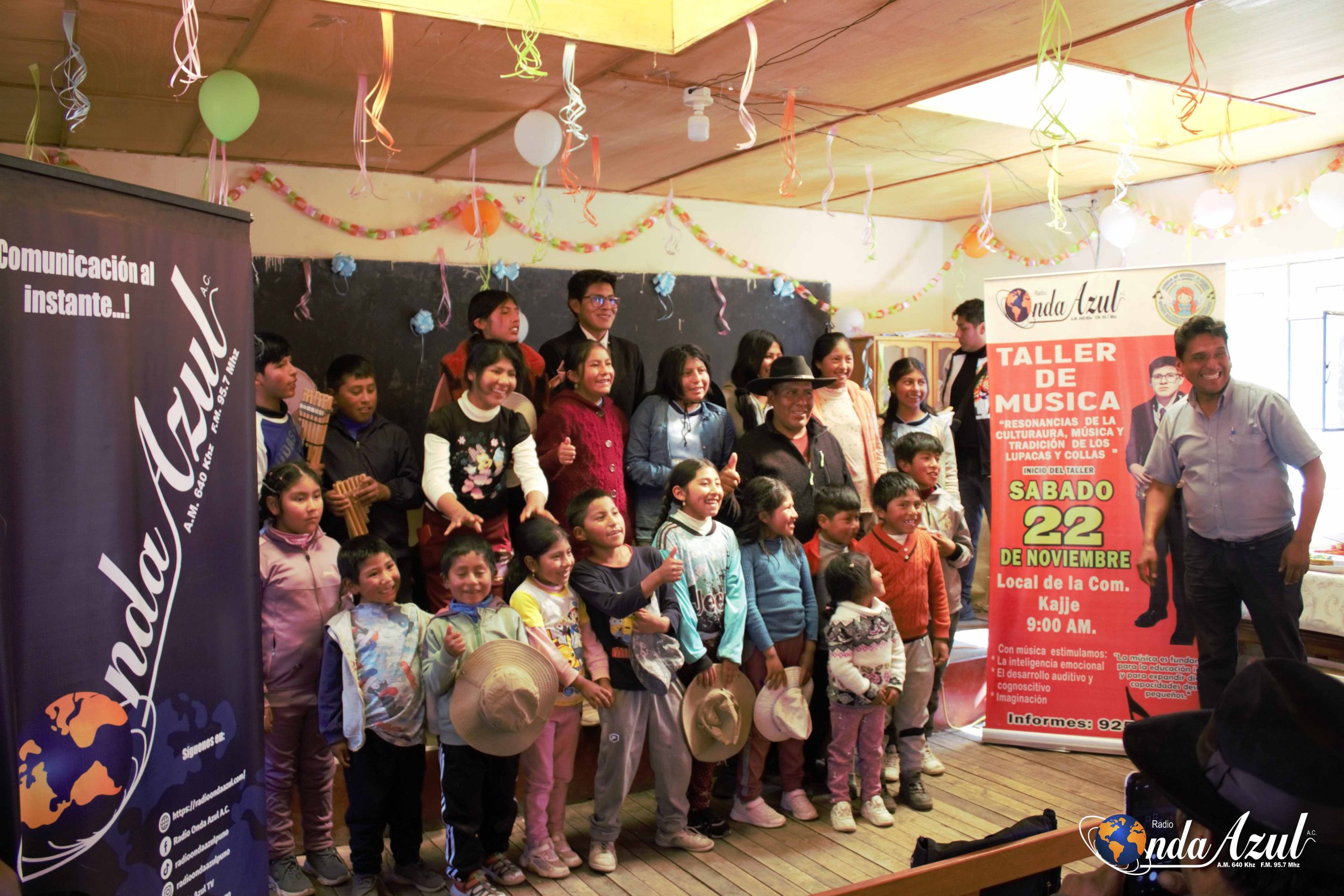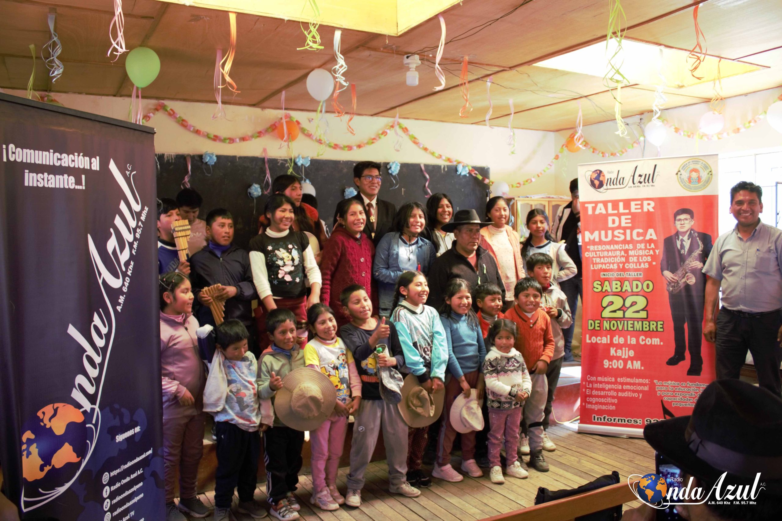 Cristian Sagua Cahuaya, estudiante de la E.P. de Arte de la UNA – Puno y beneficiario del programa de becas “Ángeles de la Caridad y la Música”, realizó la presentación oficial para la apertura de los talleres de música dirigió a niños y adolescentes de la comunidad de Kajje en la provincia de Chucuito – Juli. La actividad dio inicio a una etapa de formación artística que busca fortalecer las habilidades musicales e identidad cultural de los participantes